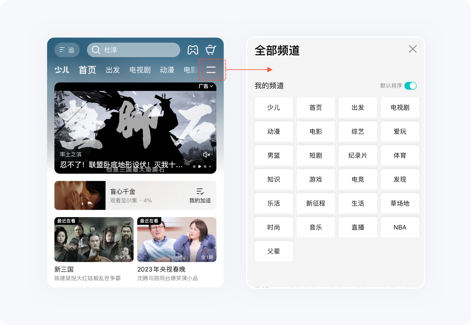 如果大量的選項無法減少,可將重要選項靠前,將其他的隱藏起來,方便用戶決策及降低失誤操作的概率。例如騰訊視頻頂部分類后面的更多圖標、支付寶首頁金剛區(qū)的更多入口,點開后就會發(fā)現(xiàn),里面隱藏了非常多的功能,這樣做能減少用戶認知負荷,提高信息篩選的效率。