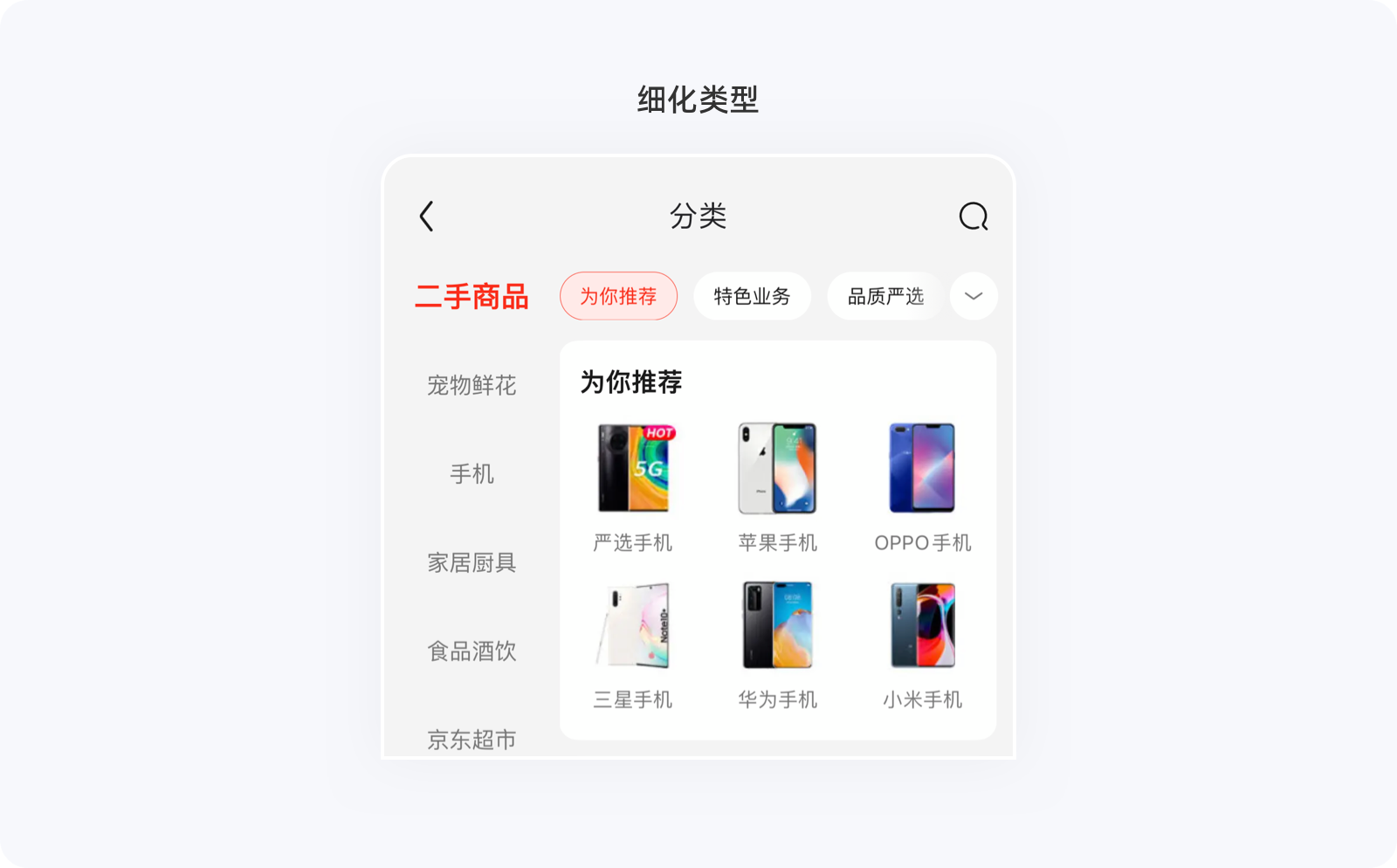 這里最為典型的例子就是電商平臺的分類,它通過一級、二級、甚至三級分類將商品所涉及到的類型合理的控制在有效范圍內(nèi),這些選項被分類/分組之后,關鍵信息得到強化,能輔助用戶快速作出決策。還有后面的二次篩選功能,幫助用戶進一步縮小范圍,選擇效率明顯會更高。當然,這不僅僅是依靠??硕?,還得結合運營需求、用戶數(shù)據(jù)等因素進行合理化分類。