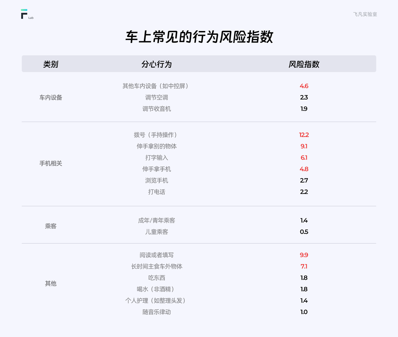 然而,需要注意的是,風險指數(shù)是一個相對的指標,不同的駕駛員可能會因其駕駛技能、經(jīng)驗和個人特點而對同一行為產(chǎn)生不同的反應和風險感知。因此,駕駛員應該始終遵守交通規(guī)則和法律,盡量避免分心行為,以確保自己和他人的安全。