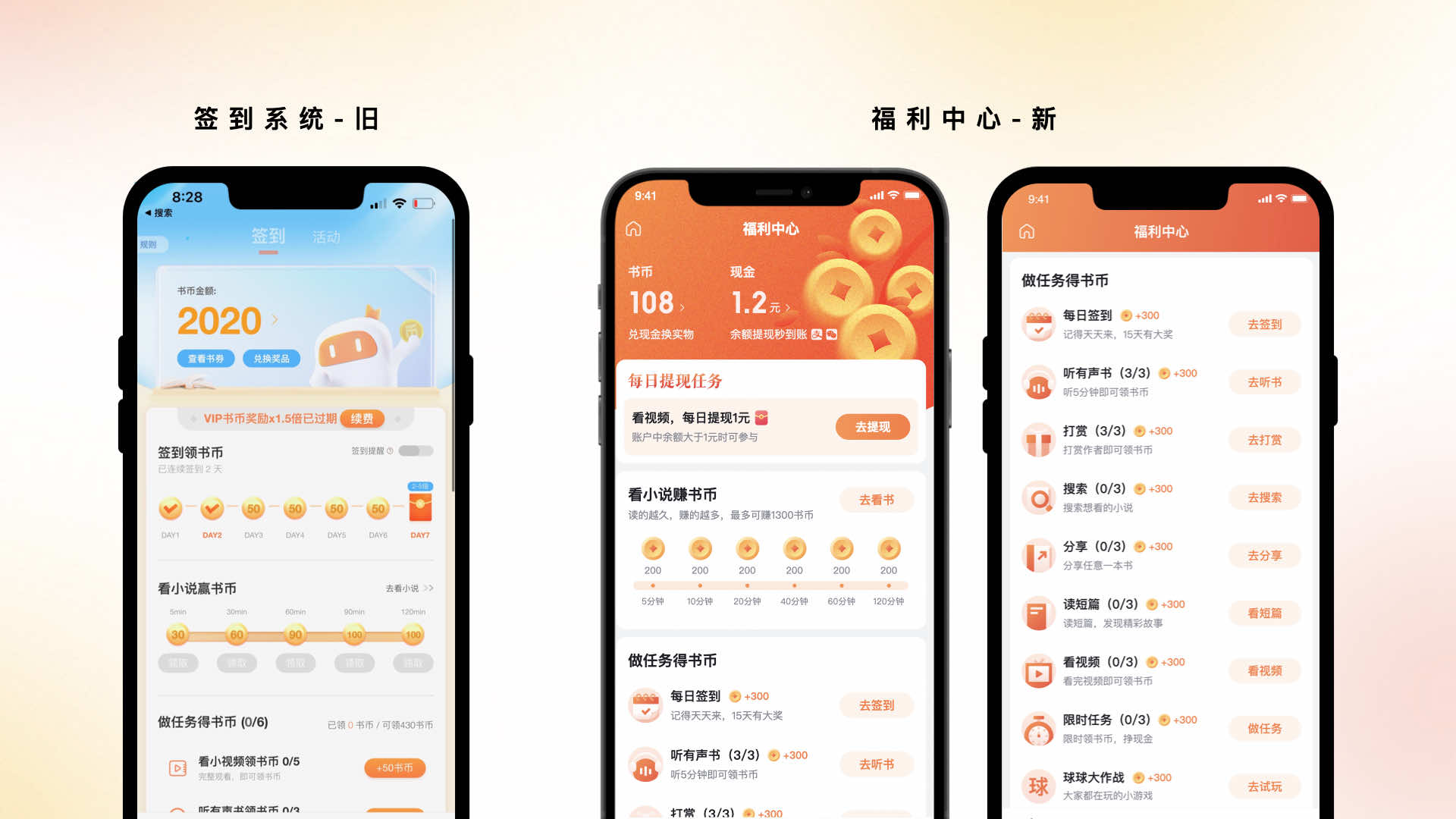 在閱讀器場(chǎng)景,我們?cè)黾恿苏挛埠桶雽咏饚蓬I(lǐng)取提示,即時(shí)提醒用戶領(lǐng)取福利,同時(shí),強(qiáng)化領(lǐng)取成功樣式,增強(qiáng)用戶的獲得感。