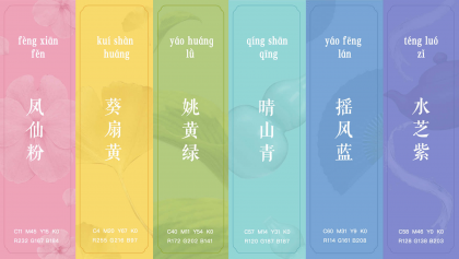 在輔助色上提取上,通過(guò)參考古代藝術(shù)品,并結(jié)合現(xiàn)代審美,提煉出鳳仙粉,葵扇黃、姚黃綠、晴山青等古典色彩,確保輔助色與主色相融合,形成一套和諧的色彩組合。