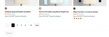 據(jù)我所知,無(wú)限流是由播客《Your Undivided Attention》的聯(lián)合主持人Aza Raskin發(fā)明的。他在2006年為一家名為“人性化”的用戶界面公司工作,那個(gè)時(shí)候人們還在使用“分頁(yè)”的設(shè)計(jì),而他則想創(chuàng)建一種能夠取替分頁(yè)的方法。分頁(yè)是將內(nèi)容切割成幾個(gè)頁(yè)面,通過(guò)底部的導(dǎo)航欄頁(yè)簽選擇可以跳轉(zhuǎn)的頁(yè)面,我們現(xiàn)在仍然能在一些電商網(wǎng)頁(yè)版中看到這種設(shè)計(jì)的蹤影,如下圖所示。