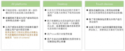 那么,怎樣在實(shí)際運(yùn)用中做好輪播圖設(shè)計(jì)呢,作者將 10 原則分成了四個(gè)部分來(lái)進(jìn)行闡述: