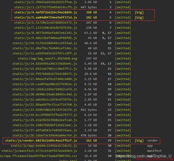 在完成了上述優(yōu)化以后,下面著重關(guān)注下webpack打包后生成的文件大小,看還有沒(méi)有可以?xún)?yōu)化的余地。由于項(xiàng)目中已經(jīng)通過(guò)路由按需加載