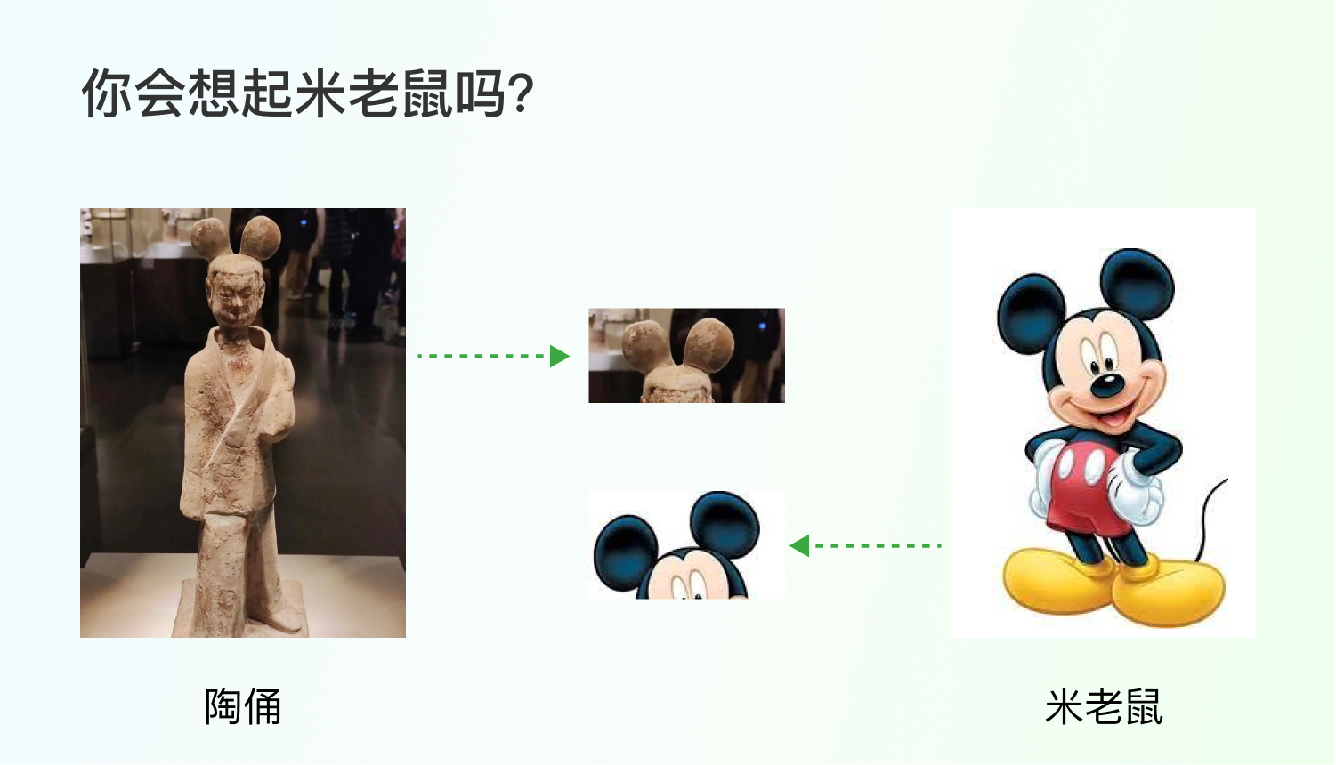 這就是心智模型,你對頭頂?shù)拇髨A形的心智是“米老鼠”,所以一旦你看到類似的形狀,米老鼠的形象就會浮現(xiàn)出來,這個發(fā)髻的形狀和你心里對米老鼠的形象產(chǎn)生了匹配。