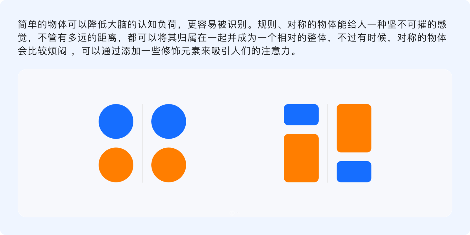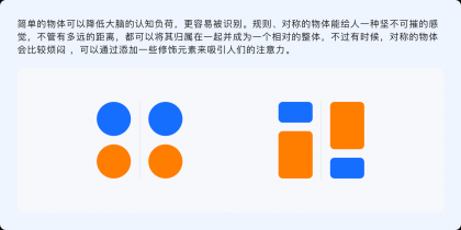 簡(jiǎn)單對(duì)稱性原則指出,人們?cè)谟^察事物的過(guò)程中第一印象更傾向于簡(jiǎn)單且對(duì)稱的物體,當(dāng)看到一個(gè)復(fù)雜的事物時(shí),神經(jīng)系統(tǒng)會(huì)潛意識(shí)地移除無(wú)關(guān)細(xì)節(jié)并簡(jiǎn)化它們,使其成為簡(jiǎn)單且統(tǒng)一的形狀。