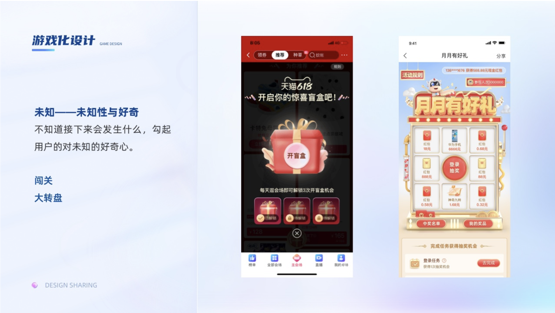 不知道接下來會發(fā)生什么,勾起用戶的對未知的好奇心。比如闖關(guān),玩家不斷闖關(guān)就是這種未知帶來的牽引。在活動運營中最常見的就是大轉(zhuǎn)盤抽獎,現(xiàn)在比較流行結(jié)合盲盒的活動,就是滿足獵奇心理,讓用戶欲罷不能.