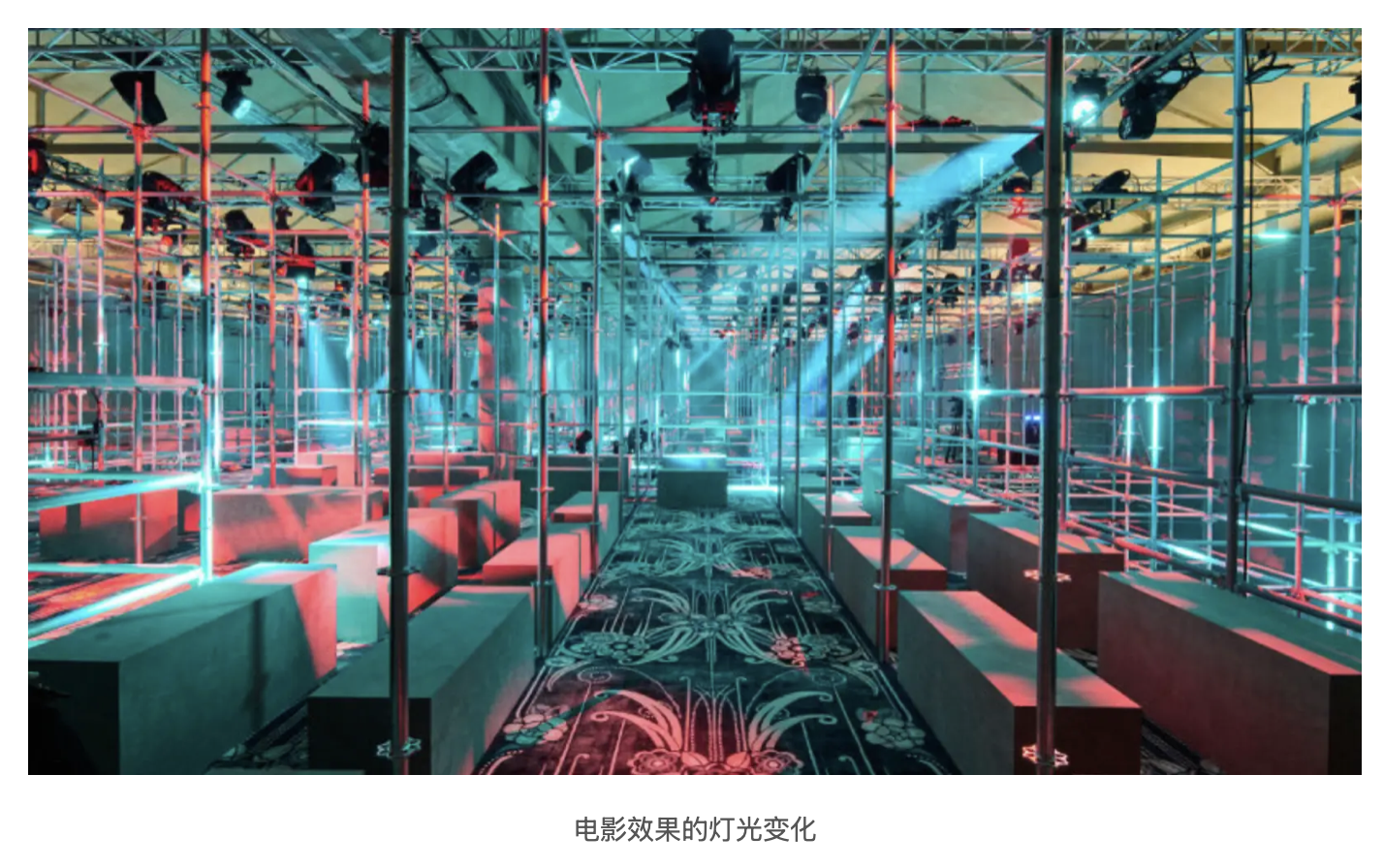 當(dāng)人們對奢侈品秀場的印象還停留在 “水晶燈、絲絨幕布” 的奢華語境中時,Prada FW25 的秀場設(shè)計卻用 “腳手架” 打破了這一慣性 —— 設(shè)計工作室 AMO 在 Prada Fondazione 內(nèi)搭建起工業(yè)感十足的腳手架結(jié)構(gòu),鋪上 Catherine Martin 設(shè)計的觸感藍色地毯,觀眾坐在樸素的混凝土長凳上,模特則在腳手架之間穿梭走秀,一場 “反傳統(tǒng)” 的時尚場景就此誕生。