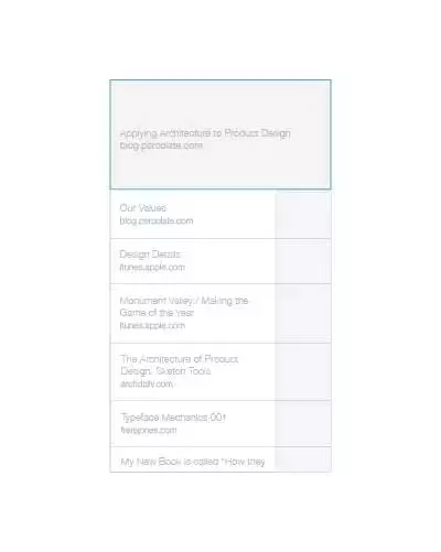 如果終點(diǎn)是不確定的,那么你通常會(huì)沿著軸線的方向?yàn)g覽/運(yùn)動(dòng),直到你找到感興趣的東西,或者感到厭倦并關(guān)閉應(yīng)用。在建筑學(xué)中,未清楚界定的終點(diǎn)非常少見(jiàn),因?yàn)榻ㄖ男藿ㄍǔ](méi)法永遠(yuǎn)持續(xù)下去,但是UI設(shè)計(jì)則不一樣,無(wú)限地滾動(dòng)下去是無(wú)比受歡迎的設(shè)計(jì)手法。