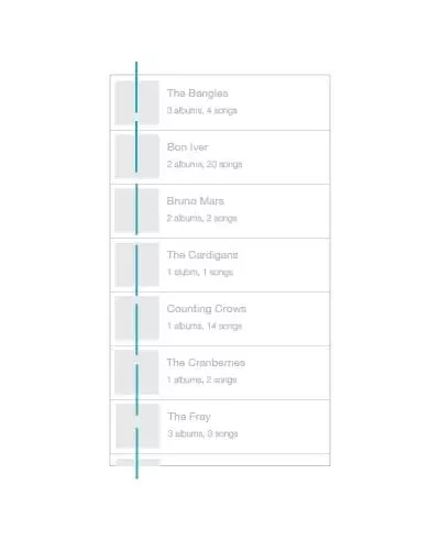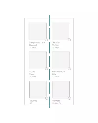 軸最常見(jiàn)于對(duì)稱元素的使用,當(dāng)元素被布置成軸對(duì)稱的布局的時(shí)候,會(huì)給人有序感。就像生活中絕大多數(shù)的事情一樣,我們更傾向于享受有序的的東西,它們令人感覺(jué)平穩(wěn)、舒適、平易近人。最簡(jiǎn)單的一個(gè)例子就是iTunes 程序中的專輯列表的設(shè)計(jì),所有的專輯列表在界面的左側(cè)保持對(duì)齊,圍繞虛線軸軸對(duì)稱。