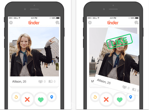 Tinder是一款交友軟件,其頁(yè)面設(shè)計(jì)的很簡(jiǎn)單但是很精致。主體就是一張附近用戶的照片,你如果喜歡可以就向右滑動(dòng)卡片,不喜歡就想左劃,就是這么簡(jiǎn)單。很適合拇指操作。