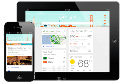 我們都知道你的app和網(wǎng)站在不同的設(shè)備下保持適配是一件很重要的工作。而卡片式設(shè)計(jì)就能很好的幫助我們來(lái)完成這一點(diǎn)??ㄆ皆O(shè)計(jì)從根本上來(lái)說(shuō)就是將頁(yè)面內(nèi)容進(jìn)行分解,然而再整合一個(gè)無(wú)法再進(jìn)行分解的元素。而響應(yīng)式設(shè)計(jì)要求的就是我們可以根據(jù)屏幕尺寸的大小對(duì)頁(yè)面內(nèi)容就行調(diào)整??ㄆ皆O(shè)計(jì)就可以對(duì)頁(yè)面內(nèi)容進(jìn)行分割重組來(lái)適應(yīng)不同的屏幕。比如這個(gè)Google在手機(jī)設(shè)備上顯示一個(gè)卡片,pad端顯示兩個(gè)卡片。