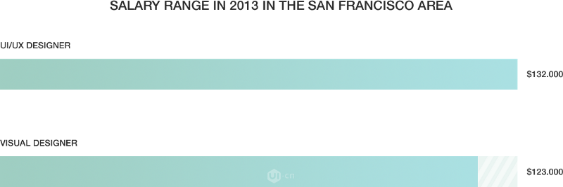 市場本身就是多學科性的。由Dashburst的圖表得出,擁有至少兩種技能的人,例如UI/UX設(shè)計或者UI/前端開發(fā),會得到比UI(視覺)設(shè)計師每年多10k的薪水。