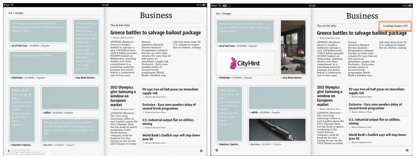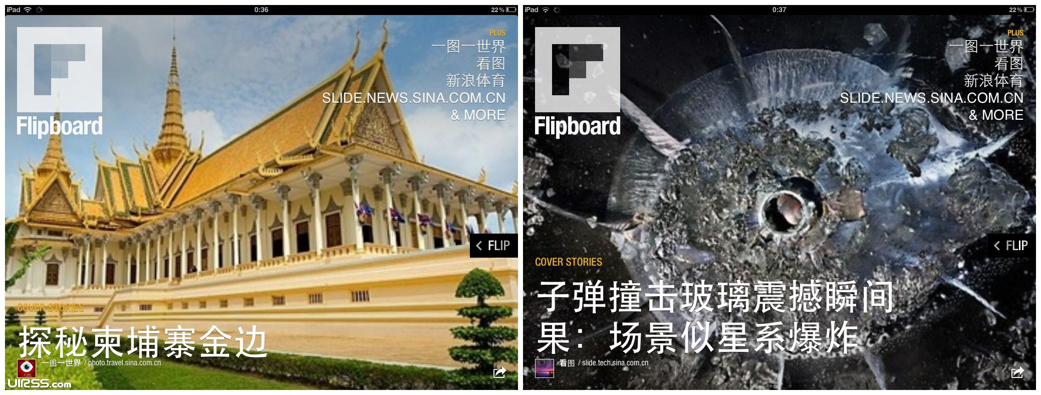 如Flipboard打開應(yīng)用時(shí),cover從舊版的固定圖片變?yōu)槟阌嗛唭?nèi)容的圖片,在第一時(shí)間建立起閱讀內(nèi)容和用戶的聯(lián)系,在等待過程的同時(shí)閱覽正在更新的信息。