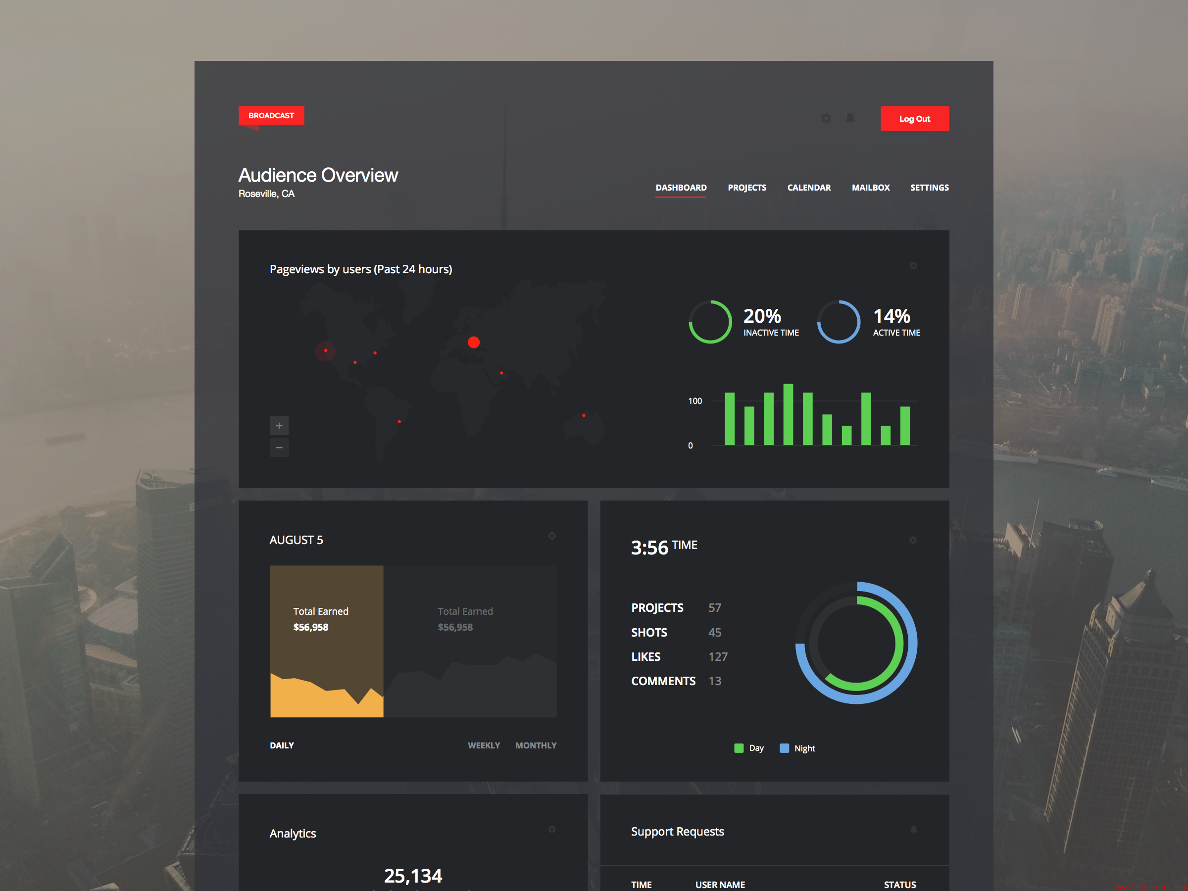 今天跟大家分享的是深色背景的網(wǎng)站界面,深色背景穩(wěn)重大氣,體現(xiàn)科技感。在界面布局方面簡(jiǎn)潔清晰,同時(shí)界面中的表格、按鈕、標(biāo)簽、圖表等控件精致美觀,不管是做web端網(wǎng)頁、大屏界面,還是手機(jī)app,都可以借鑒。