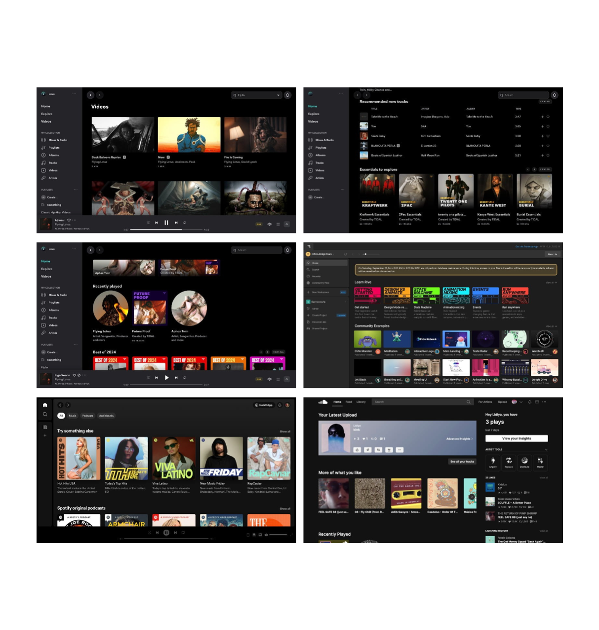 • 主內(nèi)容區(qū)卡片化:核心區(qū)域以卡片或模塊堆疊,內(nèi)容塊清晰(如“New albums”、“Community Examples”)。