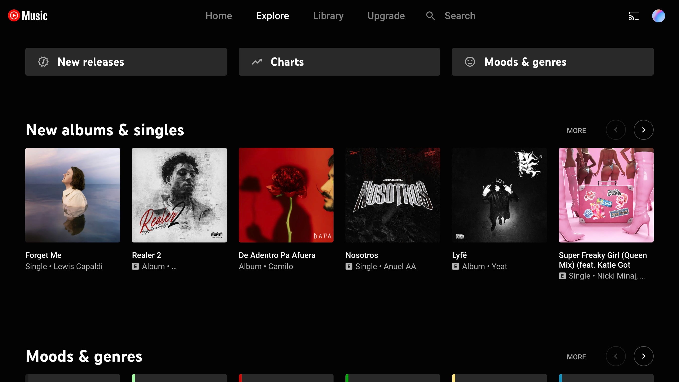 • 層次感:大標(biāo)題(如“New albums & singles”)→ 模塊標(biāo)題 → 內(nèi)容卡片 → 二級信息。