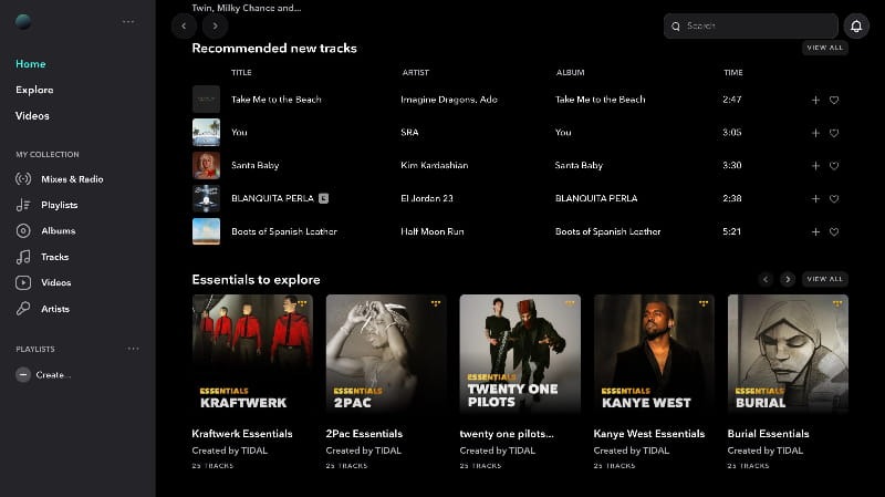 • 頂部導(dǎo)航欄:固定在頂部,放置核心功能入口(Home、Explore、Library、Search)。