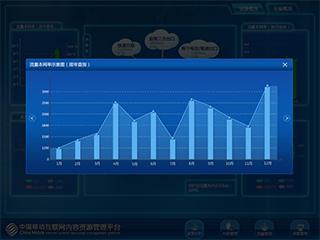 4、IDC服務(wù)流量——呈現(xiàn)的是全網(wǎng)各省IDC服務(wù)流量的熱力圖。在地圖上點擊某個省份,呈現(xiàn)該省當(dāng)月的IDC服務(wù)流量。